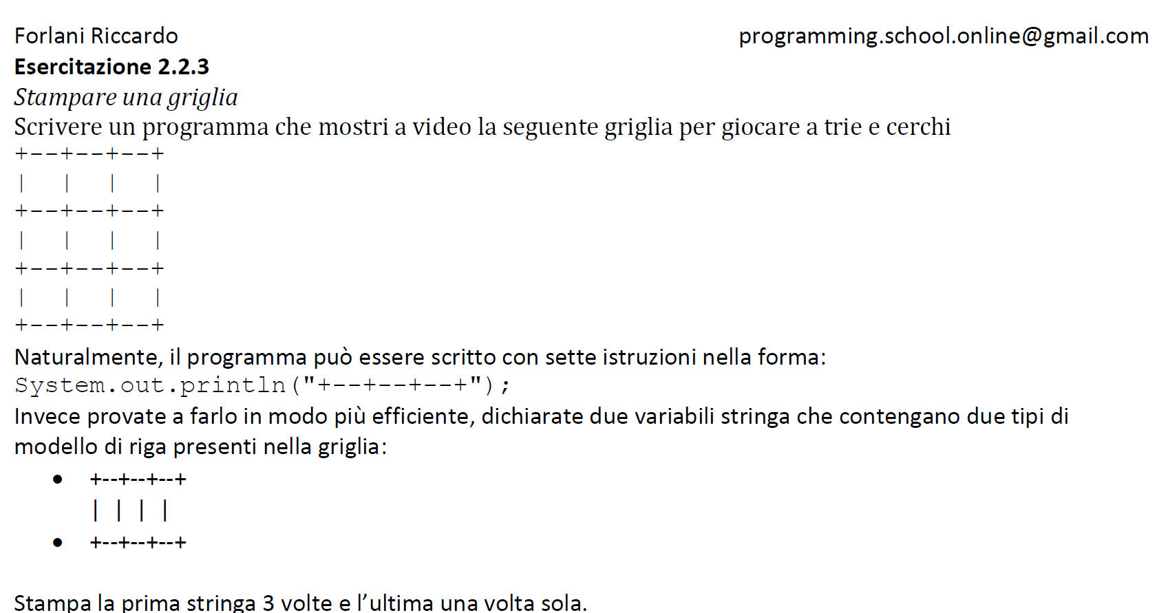 Scrivere i tuoi primi semplici programmi in Java e farli eseguire.